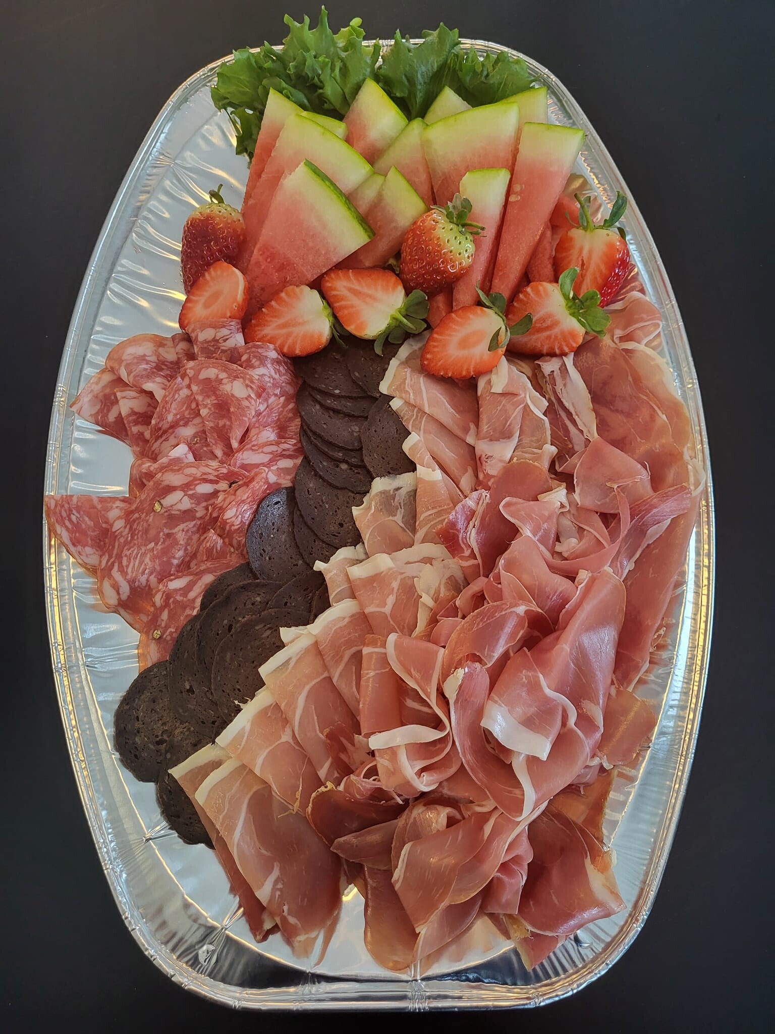 Maten leveres på pyntede fat, klare til å settes rett på bordet. Varmmaten leveres i aluminiumsformer med instruksjoner for oppvarming/steking